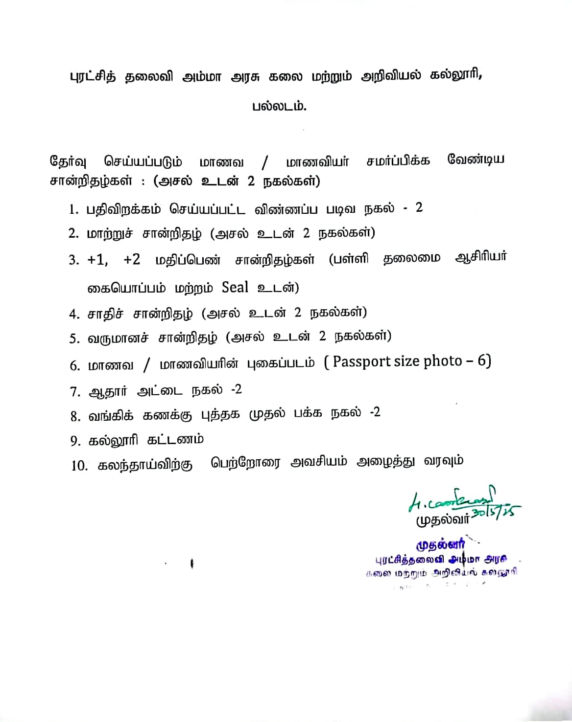 Puratchi Thalaivi Amma Govt Arts and Science College, Palladam – UG Rank List 2025 |  Official Website